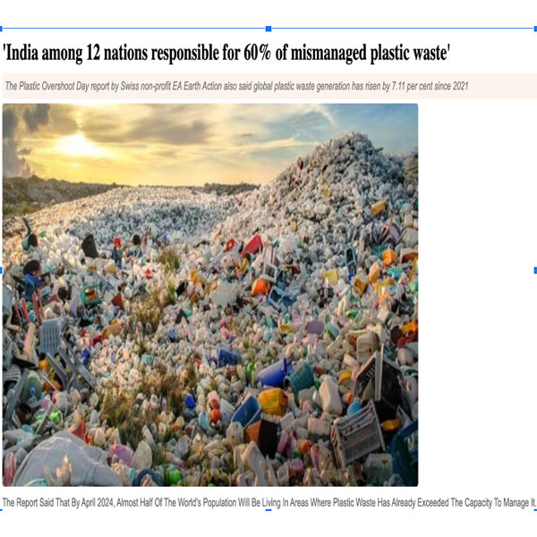 India among 12 nations responsible for 60% of mismanaged plastic waste